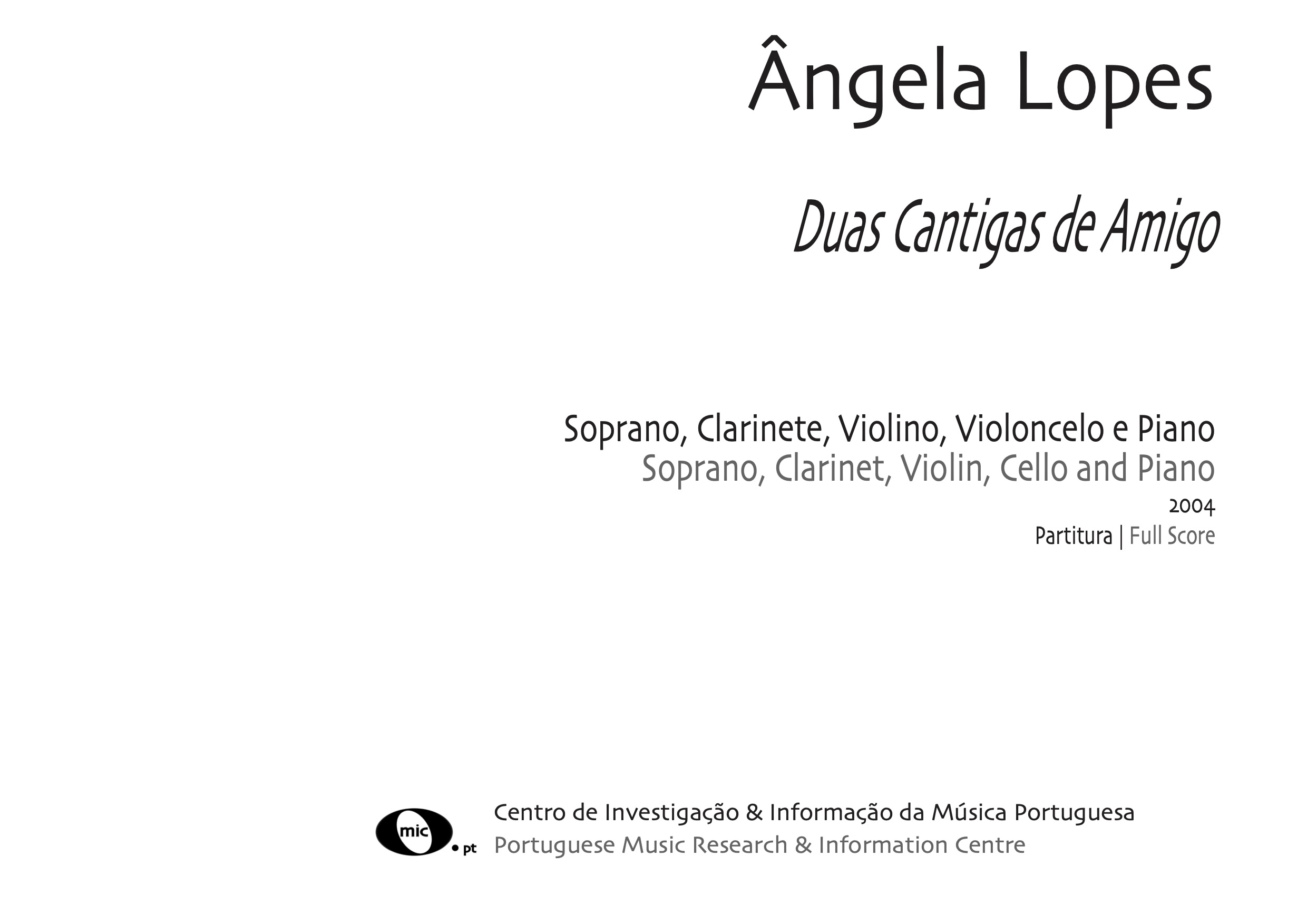Soprano, Clarinete em Sib, Violino, Violoncelo e Piano