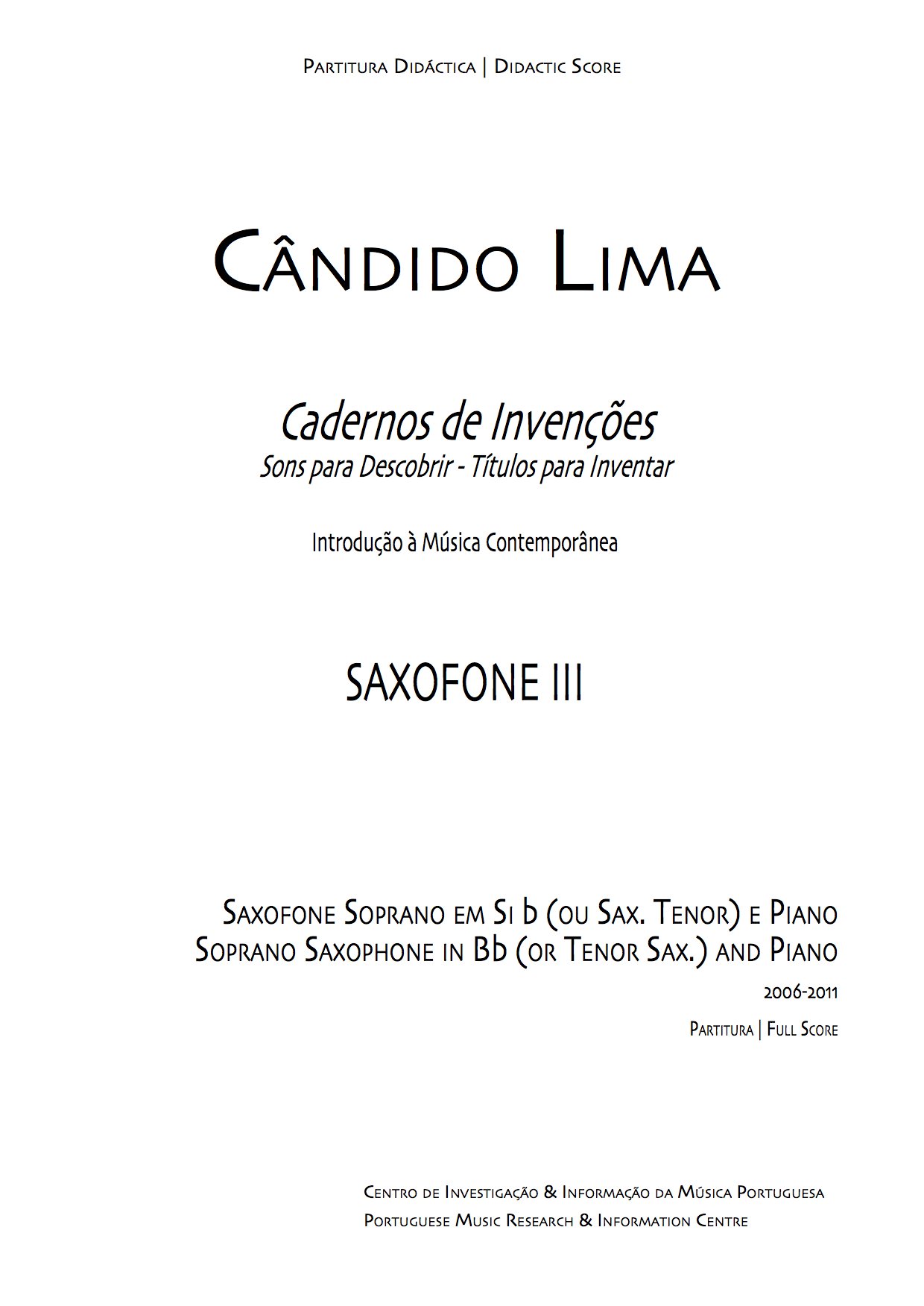 Cândido Lima / Cadernos de Invenções - Saxofone III